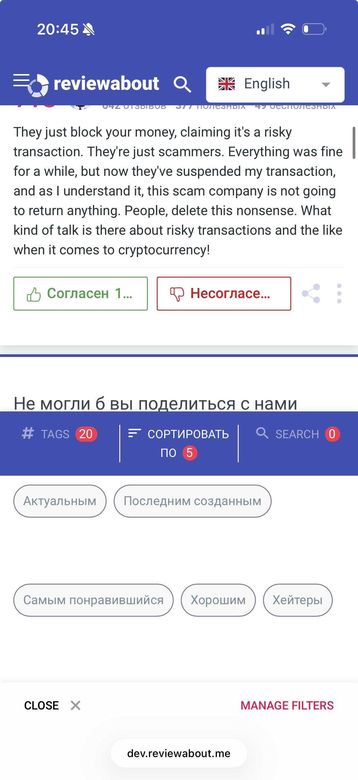 Bloquean el dinero así nada más, diciendo que es una transacción de riesgo, son unos estafadores comunes. Todo estaba bien hasta que llegó este momento, ahora me han suspendido la transacción y, como entiendo, la estafa no va a devolver nada. Gente, eliminen esta basura, ¿qué puede decirse de transacciones de riesgo y demás si esto es criptomoneda!