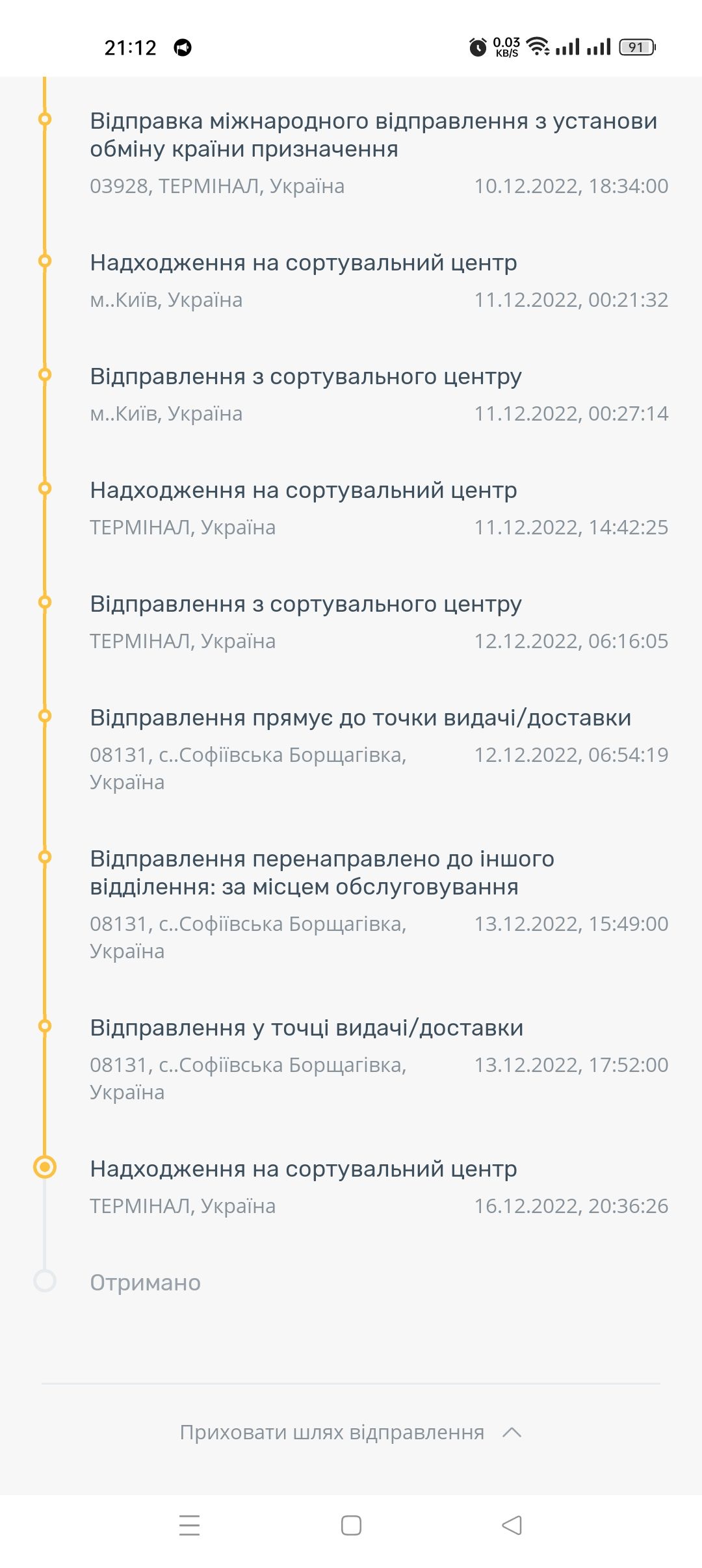 сделала заказ в сентябре с Одессы в Днепр. Оплатила посылку на олх в 1500 грн.За 2 дня посылка была в сортировочном центре .Уже месяц там нет никаких продвижений .Ежедневные звонки и жалобы на горячую линию не дают результатов .Нагло обещают что отправят сегодня/завтра ,но ничего не происходит Мое отделение находиться в двух остановках от сортировочного центра и там моя посылка уже почти месяц .Если хотите сохранить товар и деньги никогда не пользуйтесь Укр почтой .